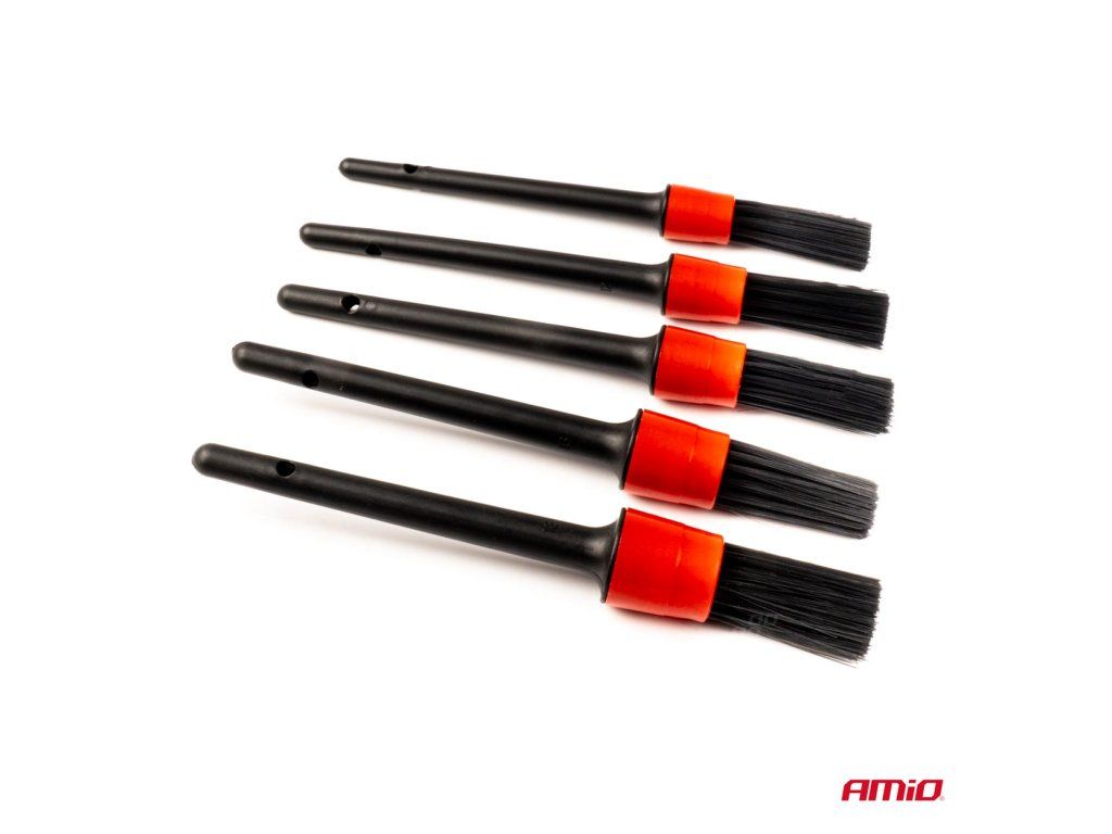1. SADA 5x DETAILINGOVÝCH ŠTETCOV Špičkové štetce s rôznymi priemermi (15mm až 26mm) a jemným syntetickým vlasom. Plastové ochranné krytky zaručujú, že pri čistení nepoškriabete jemné povrchy, lak ani kožu. Ideálne na prach v špárach, logá, stredovú konzolu a ovládacie prvky.