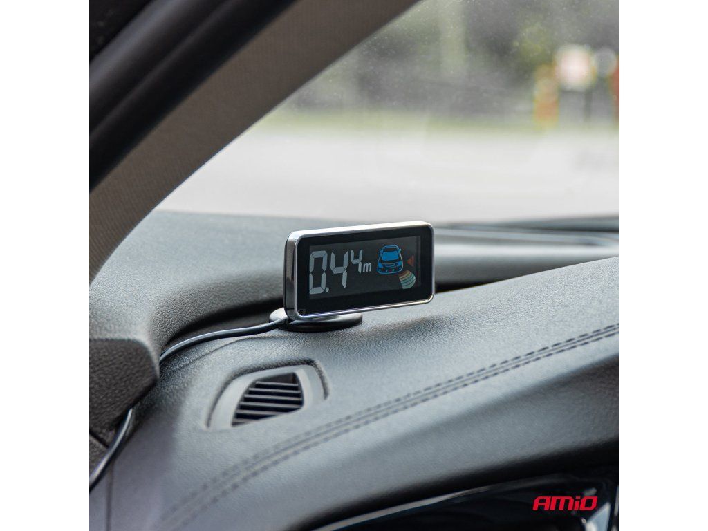 Precízna 3D detekcia (4 senzory) Sada obsahuje 4 vysoko citlivé ultrazvukové senzory v elegantnej čiernej farbe, ktoré rovnomerne pokrývajú celú šírku zadnej časti auta. Systém sa automaticky aktivuje pri zaradení spiatočky.
